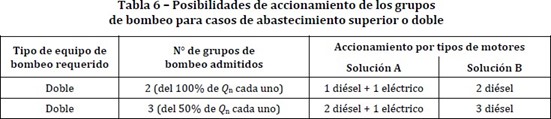 - Se permiten bombas con accionamiento eléctrico y diésel