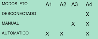 - A4: Arranque manual de emergencia, en modo manual y automático.