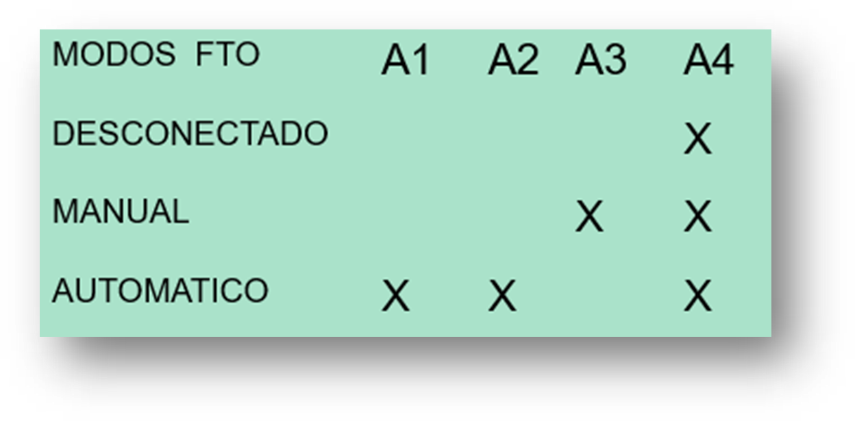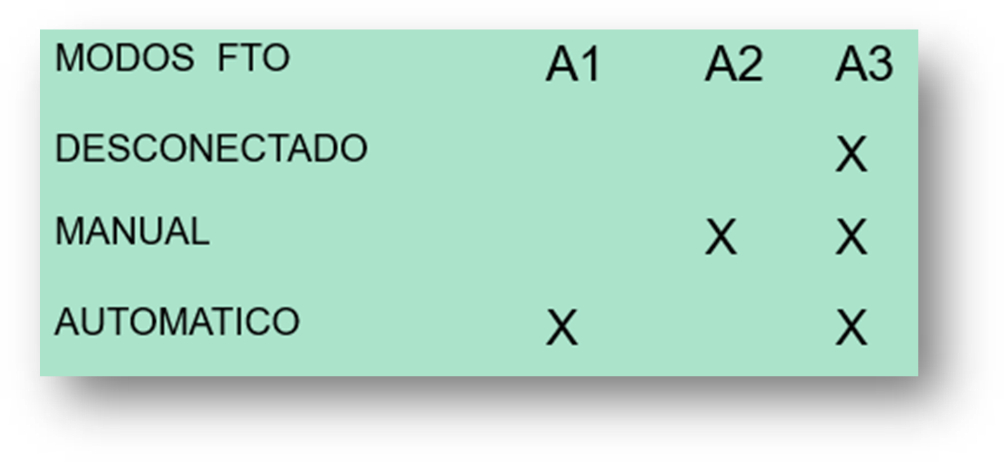 - A2: Arranque manual en modo de funcionamiento automático